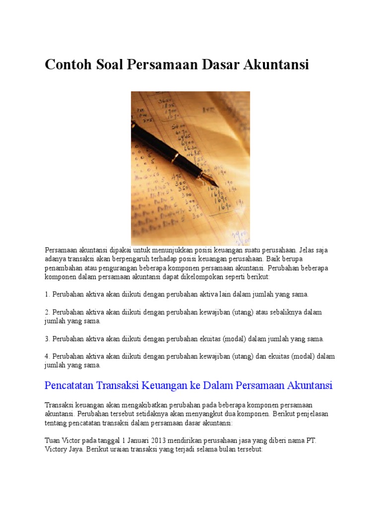 Contoh Soal Persamaan Dasar Akuntansi Pdf from imgv2-2-f.scribdassets.com Contoh soal transaksi bisnis dan persamaan akuntansi. Check spelling or type a new query. Maybe you would like to learn more about one of these? We did not find results for: